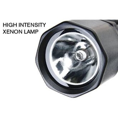 The PELICAN™ M11™ Flashlight uses a rechargeable 4 C Ni-MH battery stick and a hi-pressure Xenon lamp to generate powerful, bright pre-focused beam. The body is molded with an all weather no-slip grip pattern. The new castle top shroud alerts user when light is left on while standing head down. The push button on/off switch operates easily even when wearing thick gloves.